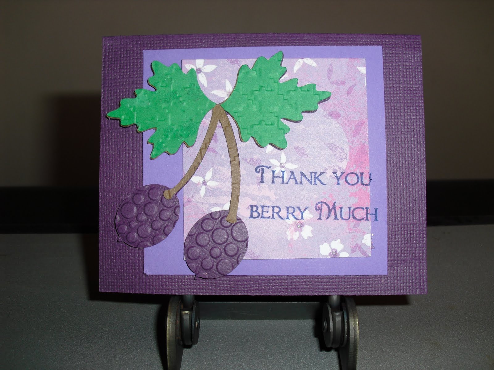I used the Preserves Cricut Cart and embossed the berry with some Cuttlebug embossing folders to create this Thank You Card.